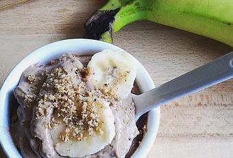 Dopo la versione light con more e yogurt, questa volta vi propongo una porcata vera: gelato al cioccolato e banane.