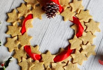 La ghirlanda di biscotti di Natale è una bellissima corona di biscotti alla cannella a forma di stellina, tutti intrecciati tra loro per formare uno splendido cerchio da incoronare con un nastrino e renderla ancora più bella. Ideale per essere sistemata in un piatto come centrotavola, magari utilizzando una candela profumata al centro, o per essere appesa alla porta in occasione delle feste.