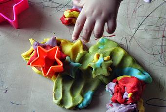 Ingredienti: 2 tazze di farina, 2 tazze di acqua calda, 1 tazza di sale, 2 cucchiai di olio vegetale, coloranti per alimenti. Procedimento: ponete tutti gli ingredienti in un tegame e mescolate a fuoco basso, lasciando che l’impasto di rassodi piano piano. Togliete dal fuoco e lasciate raffreddare. Dovrà risultare un impasto asciutto e non appiccicoso: se l'impasto dovesse essere troppo molle, continuate la cottura. Una volta ottenuta la consistenza ottimale, si possono aggiungere i coloranti e dividere l’impasto in piccole porzioni che potranno poi essere modellate a piacimento. Attenzione ad evitare che la pasta così prodotta possa essere ingerita da animali o bambini molto piccoli.