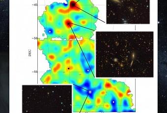 I ricercatori hanno quindi confrontato la mappa ottenuta dalla distribuzione della massa con una nuova mappa ottica della distribuzione delle galassie ricavata sempre dalla survey DES. Questa informazione ha permesso agli studiosi di cercare eventuali schemi presenti nella distribuzione sia delle galassie che della materia oscura. «Ciò ha permesso di controllare la consistenza del nostro lavoro dato che ci aspettiamo che la distribuzione delle galassie segua quella della materia oscura», dice Vikraman. Questi risultati preliminari, infatti, suggeriscono che la relazione tra la mappa della distribuzione visiva delle galassie e quella relativa alla distribuzione della massa è molto vicina a quella predetta dai modelli basati sulle simulazioni cosmologiche che includono l’espansione accelerata dell’Universo.