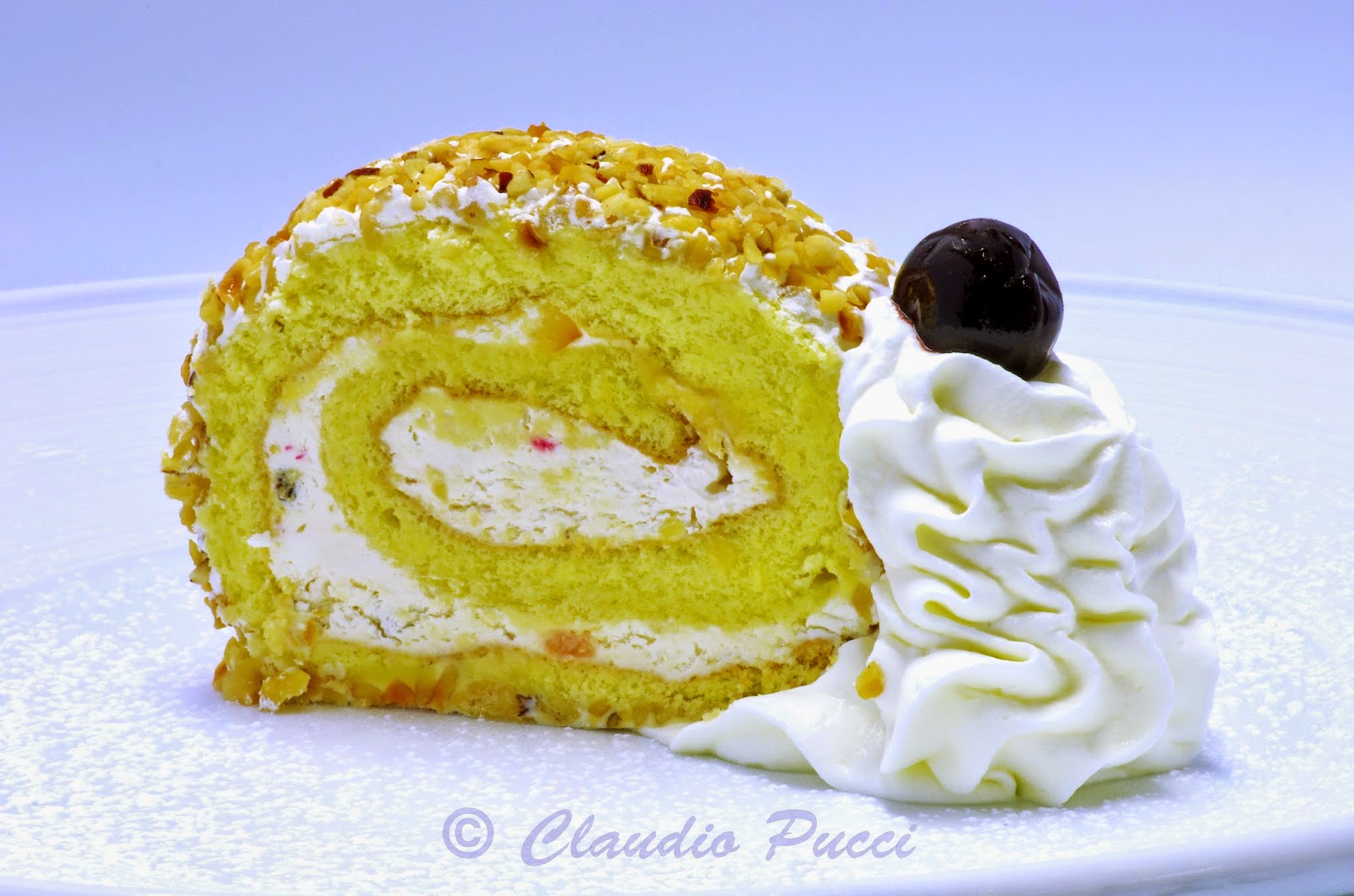 Quando il rotolo e freddo spalmarlo con panna montata e cospargere di granella di nocciola.Conservare in frigo a negativo e tirare fuori almeno 2 ore prima dell'uso