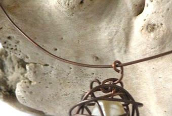 Il girocollo è realizzato interamente a mano con filo di rame da 1 mm anticato con la fiamma del cannello.