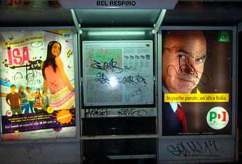 Queste pensiline hanno un paio d'anni di vita e sono già completamente devastate dai graffiti. Gli "artisti" (così come li definiscono certi media criminogeni) hanno imbrattato perfino la mappa dell'Atac rendendola illeggibile. E non è certo un caso isolato. Scarabocchiare mappe, cartelli turistici, segnali stradali, e ogni altra segnaletica di pubblica utilità sembra essere diventato lo sport preferito dei nostri "artisti". Tempo fa, durante una nostra passeggiata antidegrado, ripulimmo completamente da adesivi e graffiti la mappa di Roma che si trova sulla pensilina dell'Atac di Largo Argentina, davanti alla libreria Feltrinelli. Sempre su questo blog denunciammo questo fenomeno di malcostume mostrando una eloquente carrellata di foto di cartelli turistici concentrati nella zona di Campo de' Fiori, tutti imbrattati dagli stessi sedicenti artisti di cui sopra. Ora la fatidica domanda: si è mai visto un artista che imbratta la mappa di una città rendendola illeggibile? Si è mai visto un artista che imbratta un cartello turistico? Ovviamente no. Siamo l'unico paese al mondo dove questi grandissimi figli di puttana vengono pacificamente sdoganati in televisione. Da giornalisti che non hanno la più pallida idea di quale sia la portata sociale del fenomeno e l'entità del danno procurato da questi insulsi visigoti. E noi paghiamo il canone per assistere a questi demenziali servizi, finanche sui telegiornali. Ogni anno il comune spende 5 milioni di euro per mettere una pezza alle devastazioni di questa cricca di vandali. Eppure, girando per la città, non c'è muro che non sia scarabocchiato. Ce ne vorrebbero 10 volte di più per porre rimedio alle devastazioni di questi vandali. 100 miliardi del vecchio conio. Eccoli qui i vostri artisti.