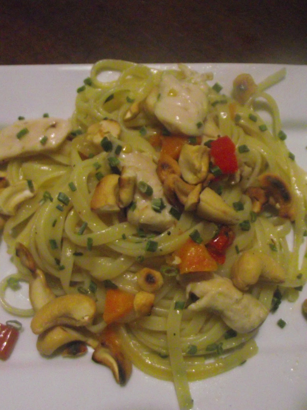 Spaghetti con pollo e anacardi