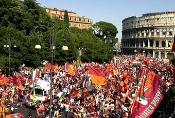 L’Olimpico si trasforma in una mega festa, i calciatori vengono salvati dalla mischia festosa dall’intervento della polizia e la città si colora di giallorosso. Dopo esattamente un anno, a Roma è ritornato lo scudetto. La festa poi si trasferirà poi al Circo Massimo, dove fino a tarda notte ci saranno i festeggiamenti con la madrina d’onore Sabrina Ferilli ad allietare la serata.