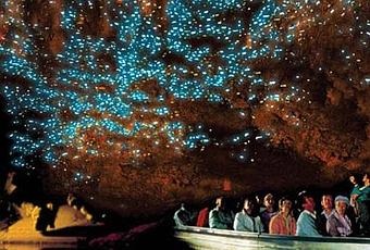 In Nuova Zelanda nell'Isola del Nord distretto di Waitomo a circa 180 Km a sud di Auckland c’è un enorme complesso con moltissime grotte calcaree scavate dall’erosione dell’oceano circa 30 milioni di anni fa. Nelle caverne vive un insetto chiamato glow-worm; una miriade di queste che sono le larve di una specie di moscerino endemico della Nuova Zelanda irradiano con la loro bio-luminescenza che varia dal verde al blu le caverne, creando uno spettacolo che ricorda un cielo stellato. Le Waitomo Caves si sviluppano su tre livelli. La parte superiore comprende l’ingresso e la cosiddetta zona delle Catacombe, sono piccole insenature nella roccia, al secondo livello c’è quella che è chiamata Banquet Chambre. Al livello inferiore, a circa 18 metri di profondità, c’è la Cattedrale, la caverna più grande di tutto il complesso, così chiamata per la presenza di un’enorme struttura calcarea che ricorda la forma di un organo. Questa caverna, famosa anche per la sua acustica perfetta, ospita spesso esibizioni liriche e concerti. L’attrazione dispone all'ingresso di un moderno centro visitatori. Ci sono tour organizzati che comprendono un giro in barca lungo il fiume Waitomo per vedere la zona con la maggiore concentrazione di moscerini luminosi. I Maori conoscevano l’esistenza delle grotte, ma non avevano mai raggiunto le caverne sotterranee che furono esplorate nel 1887 dall’allora capo Maori Tane Tinorau e dal geometra inglese Fred Mace che risalirono con una zattera il fiume Waitomo.