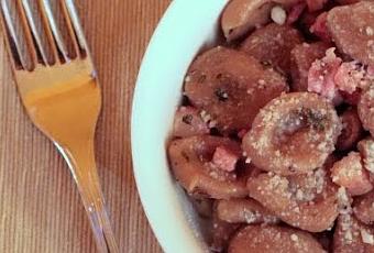 Lavorando sempre su un ripiano ben infarinato, dividere l'impasto in tanti bastoncini da cui poi ricavare piccoli tocchetti da schiacciare con il pollice per dargli una forma simil orecchietta (vi consiglio, di tanto in tanto, di infarinarvi anche il pollice così evitate che il gnocchetti vi si attacchi al dito!). Cuocere gli gnocchi in abbondante acqua bollente salata.