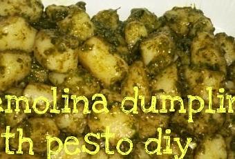 - 60g semolino- 150g acqua salata- farina 00 q.b.- pesto fatto in casa al momento (basilico, olio evo, sale, aglio q.b., pecorino e grana)
