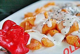 mettere la robiola in un tegamino e scioglierla a fuoco lento poi unire il parmigiano necessario per ottenere una crema condire gli gnocchi e impiattare, poi spolverare con semi di pappavero