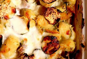 Per gli gnocchi : 400 gr. patate - sale - 80-100 gr. farina 0 Per la zucchina grattugiata: 1 zucchina - 1/2 scalogno - aglio - vino bianco - sale - pepe - olio e.v.o.- finocchietto selvatico - prezzemolo - peperoncino di cayenna in polvere Per le verdure grigliate : 1/2 zucchina - 1 peperone giallo - olio e.v.o - sale - pepe - aglio - prezzemolo - timo Per la besciamella : 10 gr. burro - 10 gr. farina 00 - 150 gr. latte - sale - pepe - noce moscata E poi : 1 salsiccia - 120 gr. stracchino - parmigiano reggiano grattugiato