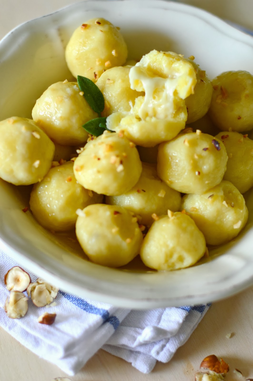In una pentola con abbondante acqua leggermente salata, far cuocere gli gnocchi al momento del bollore, quando verranno a galla, scolarli e condirli con il burro fuso.