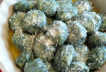 Lessa velocemente tarassaco e borragine, e strizzarli bene per eliminare l’acqua in eccesso. Una volta freddi sminuzza la verdura al coltello molto finemente, meglio non usare il minipimer perche le lame la ridurrebbero in pappa. Per aggiungere un po’ piu’ di sapore puoi anche far saltare velocemente le verdure in padella con un po di olio di oliva. Mescola con la ricotta fresca, la scorza del limone e il parmigiano grattato. Aggiungi sale e pepe, la noce moscata grattata e unisci al composto 2 uova intere e con un cucchiaio di legno mescola il tutto fino a che non è ben amalgamato. Passa quindi a preparare gli gnudi. Con le mani forma delle palline con le mani, passale nella farina in modo che si crei una sorta di pellicola protettiva che eviti agli gnudi di disfarsi qualdo li cuocerai. Mettili su una spianatoia ben infarinata ben distanziati l’uno dall’altro.