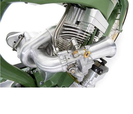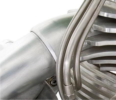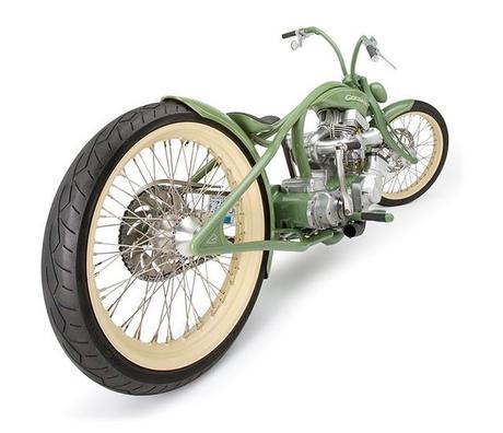 Trouble is a V-twin single cylinder. A lot of unique things about it. Small details like I placed the shock and spring inside of the neck of the frame. I was headed to the AMD Championship and it was in the height of the long wheel bases and fat tires. I wanted to go there with something worthy of backing up the BTR-3. The bike was such a contrast to everything else that was there.
