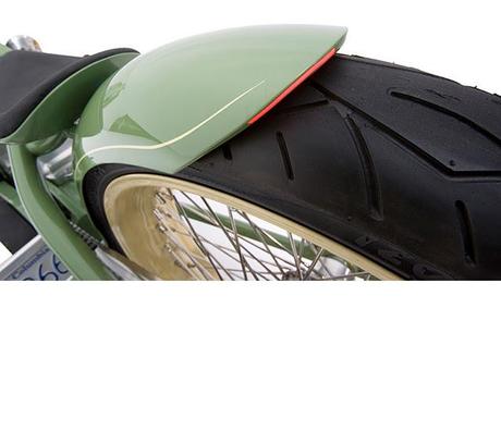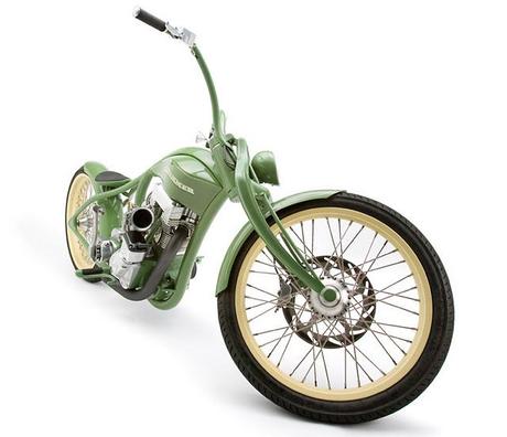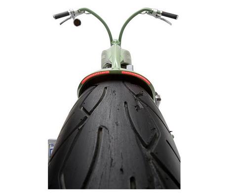 Trouble was an exercise in minimalism. There are lots of unique things about this bike. The shock and spring are inside the neck of the frame. I wanted to go to the bike show with something worthy of backing up the BRT3 and I wanted to create a bike that was such a contrast to everything that was out there at the time. It was at the height of long wheel bases and fat tires.