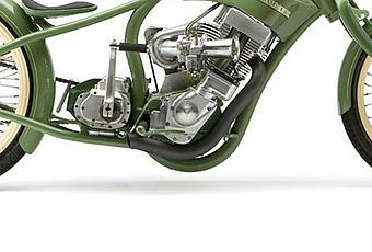 Trouble is a V-twin single cylinder. A lot of unique things about it. Small details like I placed the shock and spring inside of the neck of the frame. I was headed to the AMD Championship and it was in the height of the long wheel bases and fat tires. I wanted to go there with something worthy of backing up the BTR-3. The bike was such a contrast to everything else that was there.