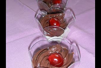 Riprendere le panne cotte e con l'aiuto di un sac à poche (con la bocchetta dentellata) riempirle con la crema al cioccolato. Decorare con le ciliegie candite e riporre in frigo per almeno 1 ora.