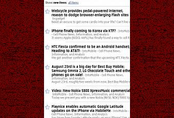Dopo averlo installato, sono incredibilmente riuscito ad accedere a Google Reader nella sua versione “normale”, quindi adattata agli smartphone ma con la possibilità di selezionare gli elementi più importanti e di contrassegnarli con una stella.