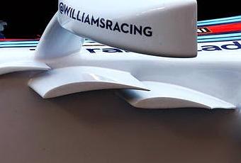 Williams ha rimosso il doppio supporto per introdurre un supporto più tradizionale dotato di un singolo attacco alla scocca. Confermate i tre appendici aerodinamiche che hanno la chiara funzione di essere dei deviatori di flusso.