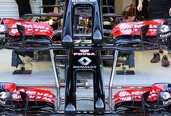 Nonostante i grossi problemi che i tecnici di Enstone stanno riscontrando nel far girare costantemente la propria vettura, gli aerodinamici, hanno sviluppato per questo circuito una nuova ala anteriore che, come potete vedere dalla foto, prevede degli interventi al profilo anteriore del mainplane, ai profili dei flap e alla zona delle derive (endplate). Oltre ai problemi di affidabilità, la Lotus E22 è sembrata una vettura molto acerba che fatica a rimanere in pista. Sembra essere carente di carico deportante soprattutto nella zona anteriore della vettura.Magazine Motori