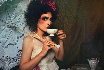 Atmosfere retrò e suggestioni oniriche da Circo decadente pervadono la collezione “Le Thèàtre des Funambules” che si ispira al mondo del circo, delle atmosfere decadenti e malinconiche, alla poesia e al sogno. Un teatro Barocco fatto di abiti shabby chic logori e invecchiati, ricchi di decorazioni, artigianato e sperimentazioni di nuove tecniche sartoriali, stampe toile de jouy, broccati e antichi merletti compongono abiti vaporosi e giacche strutturate. In passerella a far vivere le creazioni della Falstaffi la splendida Grace Hall.