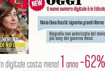 Ma sì, sorridiamo con “Oggi”, che si riferisce a un giorno del tutto irreale. La ministra sexy con biografia non autorizzata. La signorina grandi riforme. E la Boschi sorride nel modo che si vede in copertina.