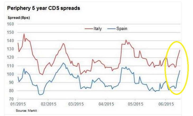 Le possibilità di contagio -qualora la situazione in Grecia dovesse precipitare- è confermata anche dall'aumento dei Credit Default Swap, che hanno subito un discreto aumento, nonostante la sentenza della Corte di Giustizia Europea che ha sancito la legittimità del piano OMT della Bce, lanciato nel 2012.