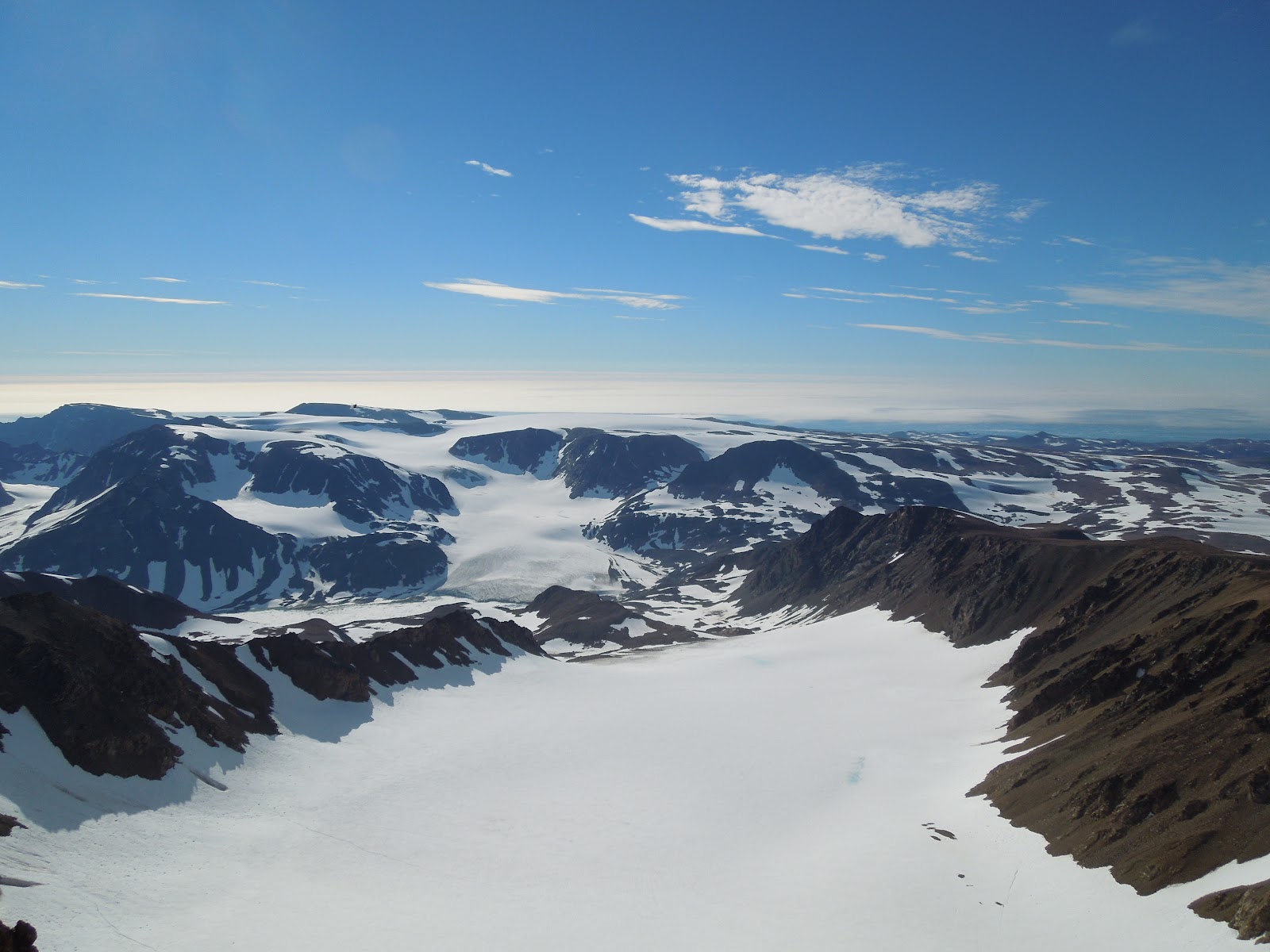 Si parte alle 7.30 per l’ascesa alla vetta. Sono poche centinaia di metri di dislivello, ma lo zaino le fa sembrare eterne. In cima al monte Trefoten abbiamo una vista a 360 gradi sui ghiacciai che si gettano nell’oceano.