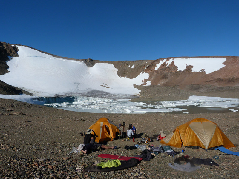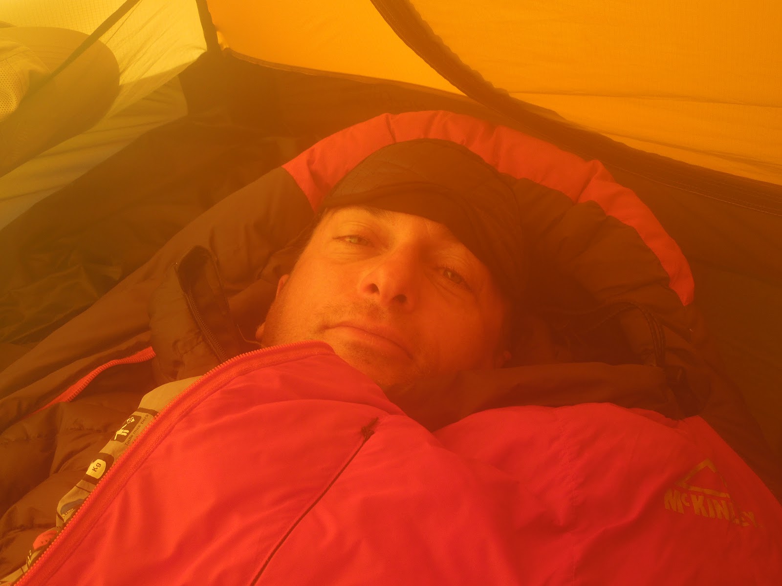 La giornata passa tra i soliti panorami da sogno, con tanto di piccola gara di sci su un nevaio. Per la notte troviamo un piccolo angolo di paradiso vicino ad un lago. Al momento di montare la tenda Ben ed io abbiamo uno dei nostri momenti di vecchia coppia inacidita: io voglio terrazzare il fondo per la tenda mentre lui è ben contento che gli spigoli delle pietre appuntite gli si conficchino tra le vertebre mentre dorme. La soluzione dell’enigma è salomonica: io lavorerò sulla mia metà della tenda (quella destra) e lui la lascerà così com’è. Per il resto seguiamo degli automatismi collaudati. Io mi occupo dei picchetti mentre Ben cerca delle grosse pietre (odia sporcarsi le mani). Ne approfitto per imparare qualche parola tecnica in francese: i picchetti si chiamano sardine, mentre i pali della tenda si chiamano balene. L’immaginario è piuttosto marino, ma la cosa non mi sorprende. Il francese è una lingua in cui vagina è maschile e cazzo è femminile.