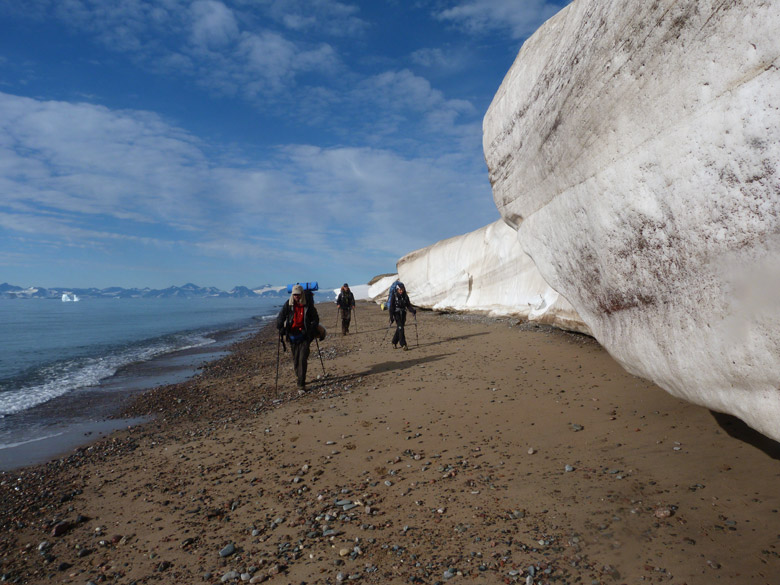 Le zanzare ci aspettano per colazione. Per tornare a Ittoqqottoormiit seguiamo la spiaggia e camminiamo a fiancho a pezzi di banchisa che non si sono ancora sciolti. Sono alti tre o quattro metri. Tra qualche settimana il mare ricomincerà a gelare e si potrà attraversare il fiordo a piedi.