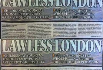 Ci risiamo. Un neonazista fa strage in Norvegia ed è colpa di Call of Duty. Migliaia di giovani britannici incazzati mettono a ferro e fuoco le città ed è colpa di Grand Theft Auto. E’ proprio vero, El sueño de la razón produce monstruos, ovvero a causa del sonno dell’analisi giornalistica e sociologica c’è sempre bisogno di un colpevole da sbattere in prima pagina. Questa volta è il quotidiano free press London Evening Standard a farla fuori dal secchio. Il giornale ha titolato a tutta pagina Lawless London, Londra senza legge, e poi nel sommario ha aggiunto “tra i saccheggiatori c’erano anche bambini di dieci anni, ispirati dai videogiochi”.