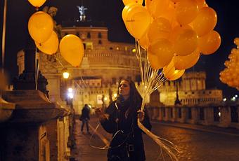 Immagino quindi cosa possano aver pensato turisti e romani quando si sono imbattuti nel centro di Roma completamente invaso da migliaia di palloncini arancioni.