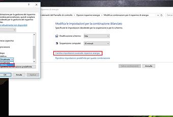 - Ora nella pagine facciamo click sull'opzione "Cambia opzioni avanzate di risparmio energia";