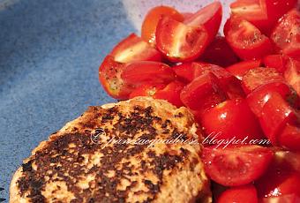 Mentre aspettiamo l'autunno e l'inverno però, io vi propongo una ricetta, anzi è più che altro un'idea. E' un modo semplice e sano per rendere più appetitosa la carne di tacchino, senza aggiungere grassi e calorie. Infatti lo sappiamo, la carne di tacchino tende a essere un po' secca e priva di appeal, io per risolvere il problema uso spesso il procedimento che vi illustrerò e vario un po' di volta in volta. Se avete freddo, sostituite i pomodorini con della verdura cotta e più autunnale! :) baci
