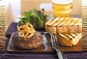 Mettere le cipolle nel food processor dopo aver installato la lama e lavorarle fino a sminuzzarle finemente. Toglierle e metterle in una scodella, poi procedere in modo analogo con il pangrattato. Tritare il manzo nel recipiente del food processor, usando il disco per trito grosso. Aggiungere i restanti ingredienti nel recipiente. Preriscaldare il forno a 230ºC. Miscelare bene tutti gli ingredienti. Usare il pangrattato quanto necessario per legare e alleggerire la miscela. Dividere in 6 o 8 porzioni, poi formare e compattare delicatamente ogni svizzera di carne, poi collocarla su della carta oleata. Infornare e cuocere per 20 minuti, in modo che le svizzere rimangano rosate al centro ma ben croccanti all’esterno. Servire con del pane tostato, di qualche foglia di insalata, cetriolini, salsa piccante e del ketchup.