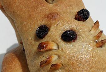 Sciogliere la pasta madre in metà acqua con lo zucchero. Unire le farine miscelate, lo yogurt, il sale e impastare aggiungendo la rimanente acqua e poco olio.