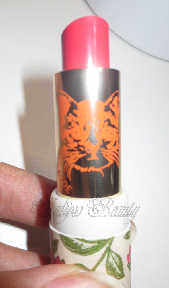 Il rossetto è caratterizzato dal tema dei gatti, già utilizzato in precedenza. L'immagine del gatto è sia sul packaging metallico sia sullo stick.