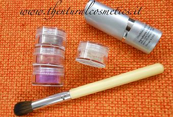I prodotti che ho ricevuto sono: un eyebuki (cicciottissimo!), una minitaglia del fondotinta num.2 neutral opaque, un rossetto minerale (num.40, rosso mat) e tre ombretti (Purple to Gold, Pink to Blue e Pink to Gold).