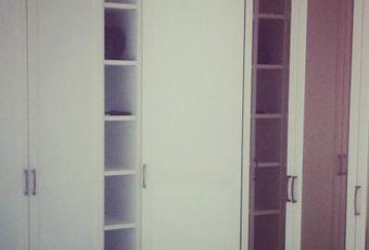 Siccome mentre tutte voi eravate al mare io mi divertivo a guardare gli operai sistemare la camera da letto e a spostare mobili, posso dire finalmente a gran voce che per lo meno l’armadio dopo un anno è stato finalmente sistemato. Lo abbiamo infatti trasformato in armadio ad angolo e abbiamo preso una scaffalatura a giorno da inserire nella composizione.