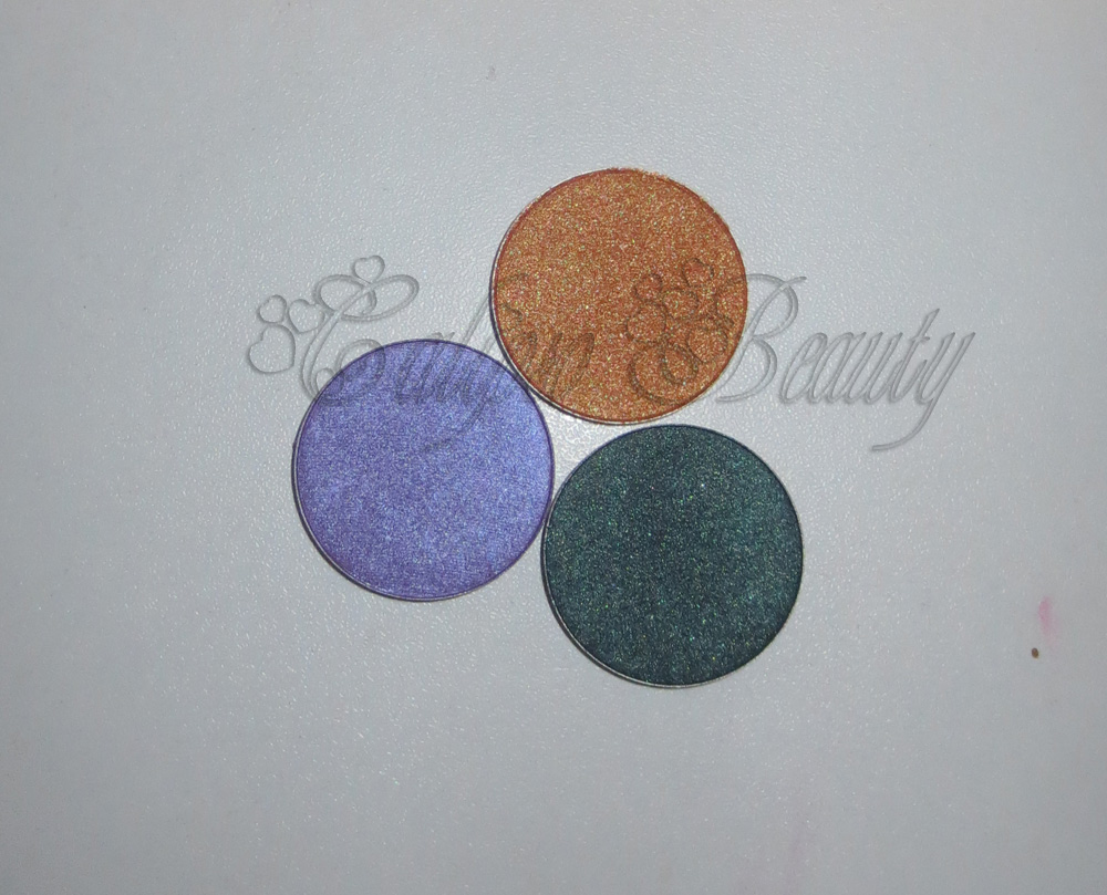 Gli swatches che vedete sono fatti senza base, prelevando il prodotto asciutto con le dita e sfruttando diverse luci per cogliere tutte le sfaccettature delle 3 tonalità.