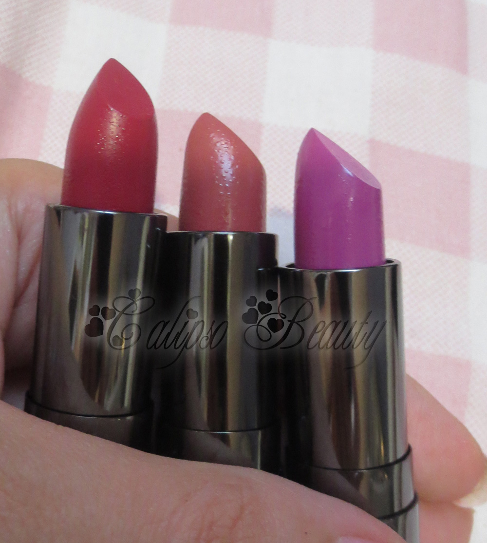 Beverly: Rosso lampone scuro.Panta Rei: Neutro medio rosato con base di rosso attenuato.Vertigo: Viola rosato.