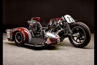 Le caratteristiche principali di questa bellezza sono: il telaio fatto a mano, i 1310 cc del motore Shovelhead d’epoca, la trasmissione HD a sei marce, le ruote anteriori e posteriori di una grossa bagger, e, da ultimo ma non per questo meno importante, la carrozzeria in vetroresina realizzata in Olanda con il serbatoio che si trova nel parafango del sidecar. Il colore di questa macchina è il verde inglese da corsa, ma è stato cambiato in queste immagini pubblicate sull’Inazuma Cafè. Perché? Perchè il blog è mio e mi piace il rosso corsa... Il tutto, via The One Moto blog.