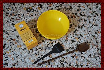 In ogni caso, per prima cosa ho versato la polvere di hennè nella ciotola, ho versato lentamente dell'acqua precedentemente riscaldata all'interno di un pentolino ed ho mischiato il tutto con il cucchiaio in plastica fino ad ottenere un composto liscio, senza grumi e non troppo liquido...