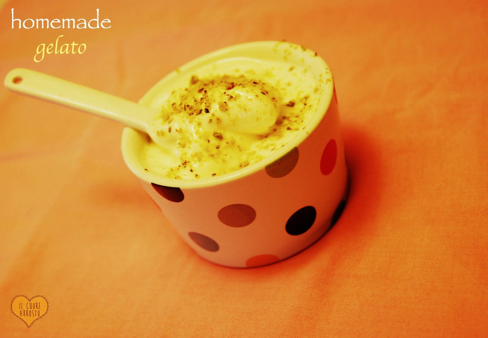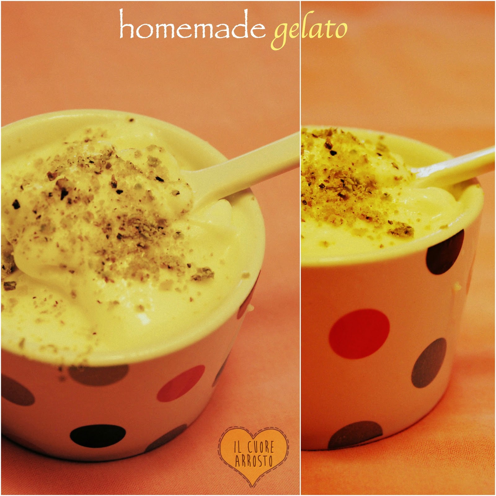 Accendere la gelatiera e, dopo 10 minuti quando è ben fredda, versare il composto e far mantecare...ovviamente chi ha la gelatiera col disco refrigerante deve ricordarsi di metterlo in freezer il giorno prima!