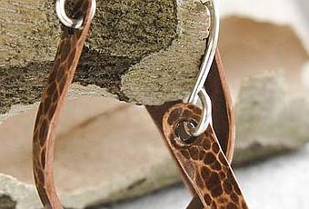 Questi orecchini rappresentano una cosa nuova per me, un passo in avanti verso nuove forme e nuovi metodi, in una strada che non voglio assolutamente abbandonare solo perchè è diventata eccessivamente frequentata. Sono realizzati in rame e argento 925, il contrasto fra i due materiali accostati è molto piacevole, come è particolarmente interessante la texture a pelle di serpente data al rame, le cui sfumature di colore non finscono mai di incantarmi...