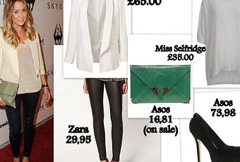 If you have watched The Hills, surely you know who I'm talking about. In fact, Lauren Conrad is not only a fashionable girl,but especially a TV personality, actress and fashion designer from U.S. Now that I've presented her, we see two of her look that we could"imitate" with a low budget!I choose the first look for the "evergreen" black & white combination, which is given a touch of color, thanks to a clutch of sage green (one of the many pastel colors, which will be very fashionable for the summer season).