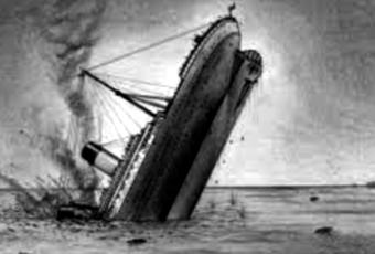 Con il cellulare sull’orecchio sinistro ed il braccio destro avvinghiato ad un pezzo di relitto galleggiante, l’uomo osserva i suoi 160 colleghi di lavoro caduti in mare aiutarsi con salvagenti e zattere improvvisate, increduli ed impotenti scrutano la loro nave – la giovane e proficua “HP Pozzuoli” – in una posizione sinistra con la prua che, mestamente, cala verso gli abissi.