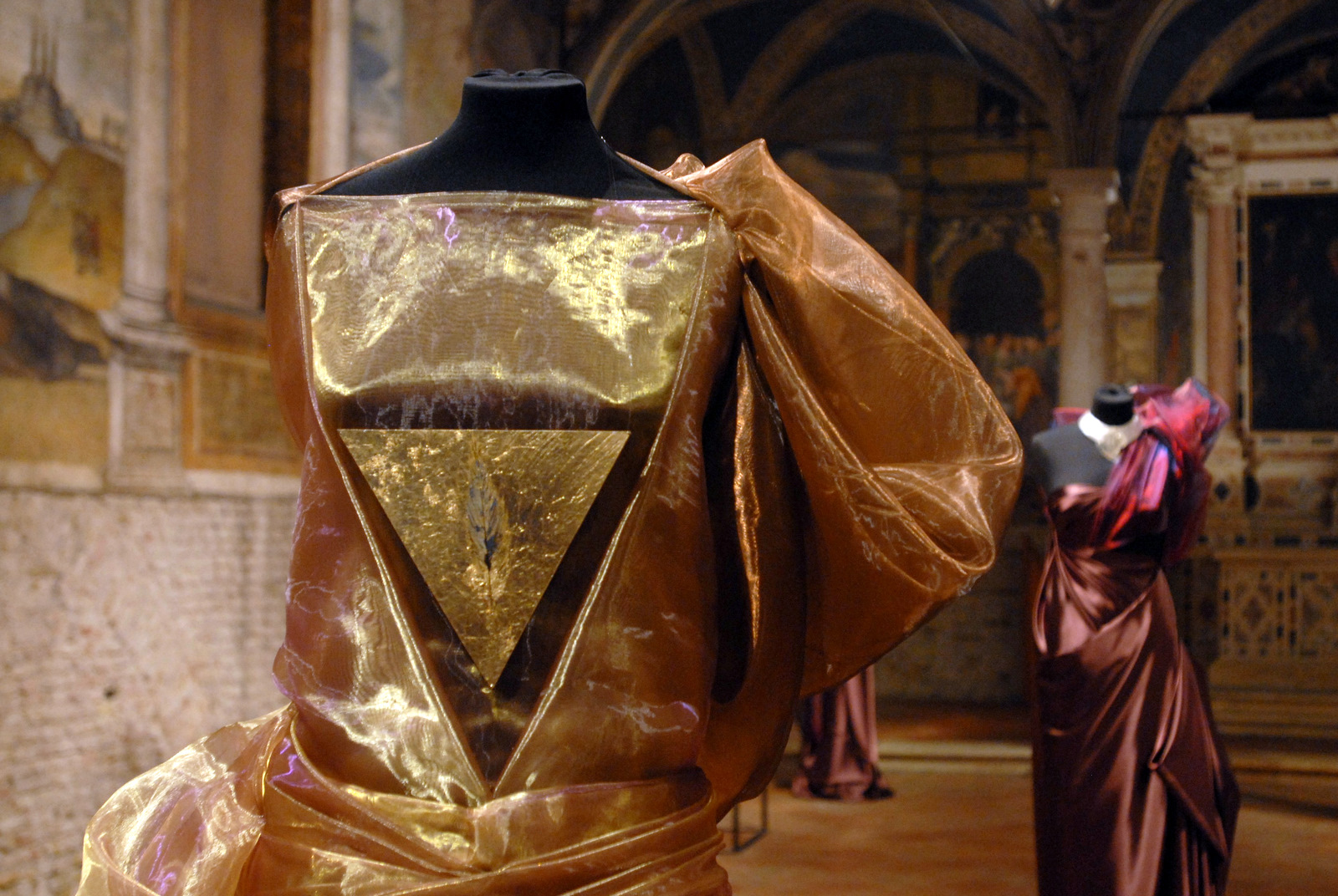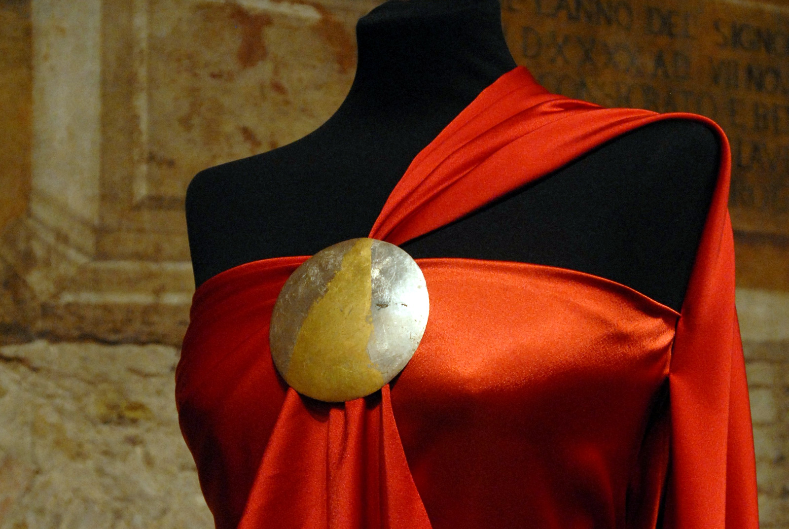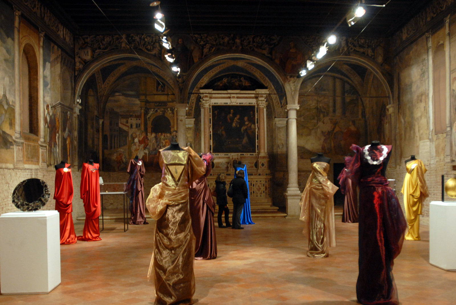 L’artista orafa padovana, Alberta Vita, e la stilista statunitense Meika Wagner, con la collaborazione di Giustina e Mariangela Magarotto, sviluppano, all’interno dello spazio espositivo dell'Oratorio di San Rocco, una personale riflessione sul tema della Mundana Vanitas, intesa come ricerca del superfluo e del vestire sofisticato. L’obiettivo è quello di riproporre in chiave moderna, seguendo un linguaggio artisticamente elaborato, un abbigliamento insolito e raffinato, dai tessuti morbidamente drappeggiati e sovrapposti, impreziositi dall’inserimento di spille, bottoni e collane.Ciò che stupisce è il fatto che gli splenditi abiti indossati dai manichini non sono cuciti ma semplicemente drappeggiati e fissati con spilli. Da togliere il fiato.I gioielli di Alberta Vita, artista della scuola orafa padovana, suggeriscono, per la fisicità dei materiali e per le forme geometriche pure, il desiderio di stabilire un rapporto inscindibile tra il corpo femminile e il suo ornamento e tra la cultura e la sperimentazione, esprimendo sempre fedeltà all’idea di arte intesa come forza della mente che può modificare, se non cambiare, la realtà.Gli abiti sono giocati dalla stilista statunitense Meika Wagner in chiave anche storica ma soprattutto illusoria, come un costante, fastoso abbellimento della donna, un crogiolo di energie sottolineato dal potere dei colori e delle stoffe, che richiamano gli antichi colori e il panneggio degli affreschi alle pareti dell’Oratorio di San Rocco, in un reciproco dialogo tra passato e presente, idealmente proiettato nel futuro. Le creazioni di Meika Wagner sono state realizzate con la preziosa collaborazione di Mariangela e Giustina Magarotto.Le eleganti e originali opere esposte, dalla linea morbida e sinuosa, sorprendono per gli interessanti e sapienti accostamenti che, con il loro dinamismo, esaltano il significato e il significante della materia e della linea.La mostra rimarrà aperta fino al 20 marzo 2011.