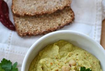 preparazioneMettere in ammollo i ceci in acqua fredda per almeno una notte: il quantitativo di acqua deve essere il doppio del loro peso.Toglieteli dall'ammollo,sciacquateli e fateli lessare in acqua leggermente salata, fino a quando non saranno morbidi.Scolateli,ricordandovi tenere da parte un bicchiere di acqua di cottura,fateli raffreddare.Mondate il cipollotto, tenendo la parte verde tenera, tagliatelo a rondelle sottili quindi fatelo appassire in un padellino antiaderente con un filo di olio,deve ammorbidirsi senza prendere colore.Frullate i ceci con il frullatutto,aggiungendo la salsa tahineh ,il cipollotto (o l'aglio),un cucchiaino di prezzemolo tritato (oppure coriandolo),mezzo cucchiaino di paprika, il succo di limone,sale e versare lentamente l'olio durante l'esecuzione.La crema dovrà risultare densa e senza grumi; se dovesse risultare troppo asciutta aggiungete qualche cucchiaio di acqua di cottura.Raccogliete la salsa in una ciotola,e decorate a piacere.Servite con verdure fresche.