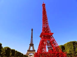 Una delle cose che più mi ha incuriosita a Parigi è stata questa copia della Torre Eiffel. Se girate per la città non mancano certo le riproduzioni di ogni dimensione del simbolo indiscusso della città francese. La particolarità di questa torre rossa consiste nel fatto che è stata interamente realizzata con le sedie Bistro di Fermob, le famose sedie pieghevoli e colorate progettate alla fine dell'800 per arredare le balere parigine e che oggi si trovano in tutto il mondo.