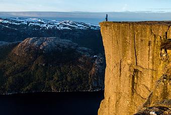 Il suo nome significa "Pulpito" e non credo sia necessario aggiungere altro. Ma mi piacerebbe darvi una serie di dati davvero irresistibili. Situato nel fiordo di Lyse (fiordo della luce), a Ryfylke, si erige uno dei posti più visitati in Norvegia. Per arrivarci sono necessarie dalle 3 alle 4 ore di escursione e per questo motivo ha un livello di difficoltà maggiore: 2 ore di salita e un'ora e mezza di discesa, ma lo sforzo vale veramente la pena. Il pulpito può essere una trappola mortale e si sono già verificati alcuni incidenti. I suoi 604 metri a picco sul mare vi faranno sentire un puntino nel mondo e una volta arrivati sulla vetta avrete solo voglia di sentire il silenzio che vi regala il paesaggio. Attenzione però con i selfie: il paesaggio è talmente bello che è davvero irresistibile non farsene uno, ma non ci stancheremo mai di ripetere che non c'è né una barriera.